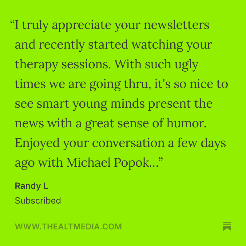 , , , , , and many others for tuning into our weekly therapy session!We just want to take a moment to thank every single one of you. Whether you’re a free subscriber or a paid supporter for being part of this community. Your notes, comments, and encouragement keep us going, and we’ve been blown away by the thoughtful messages that have come in.