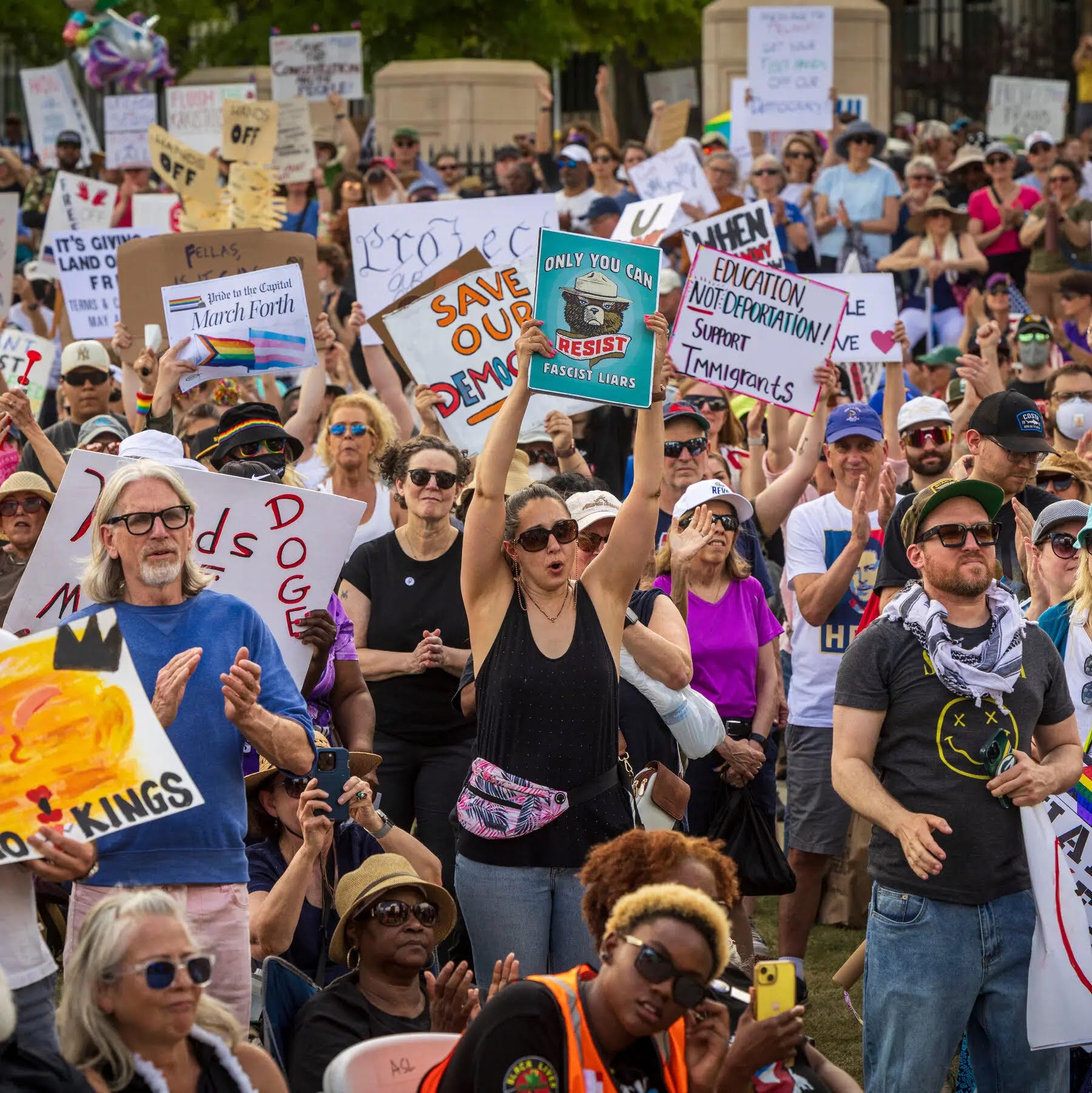 We have plenty of reasons to be in the streets today. But one big one is we’re marching because Rep. Melissa Hortman can’t. We’re sending love to her family, and we’re sending rage toward Washington, D.C.