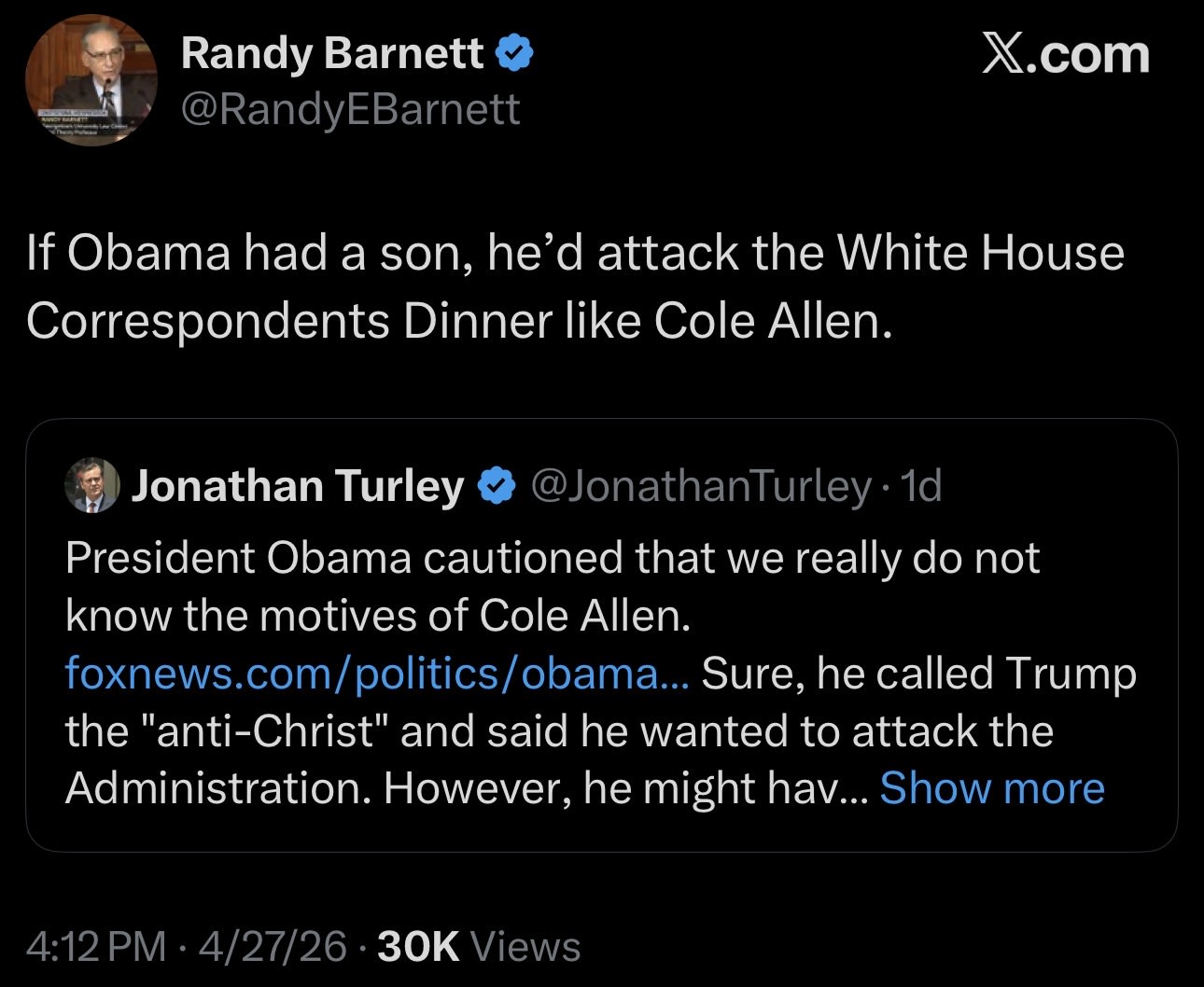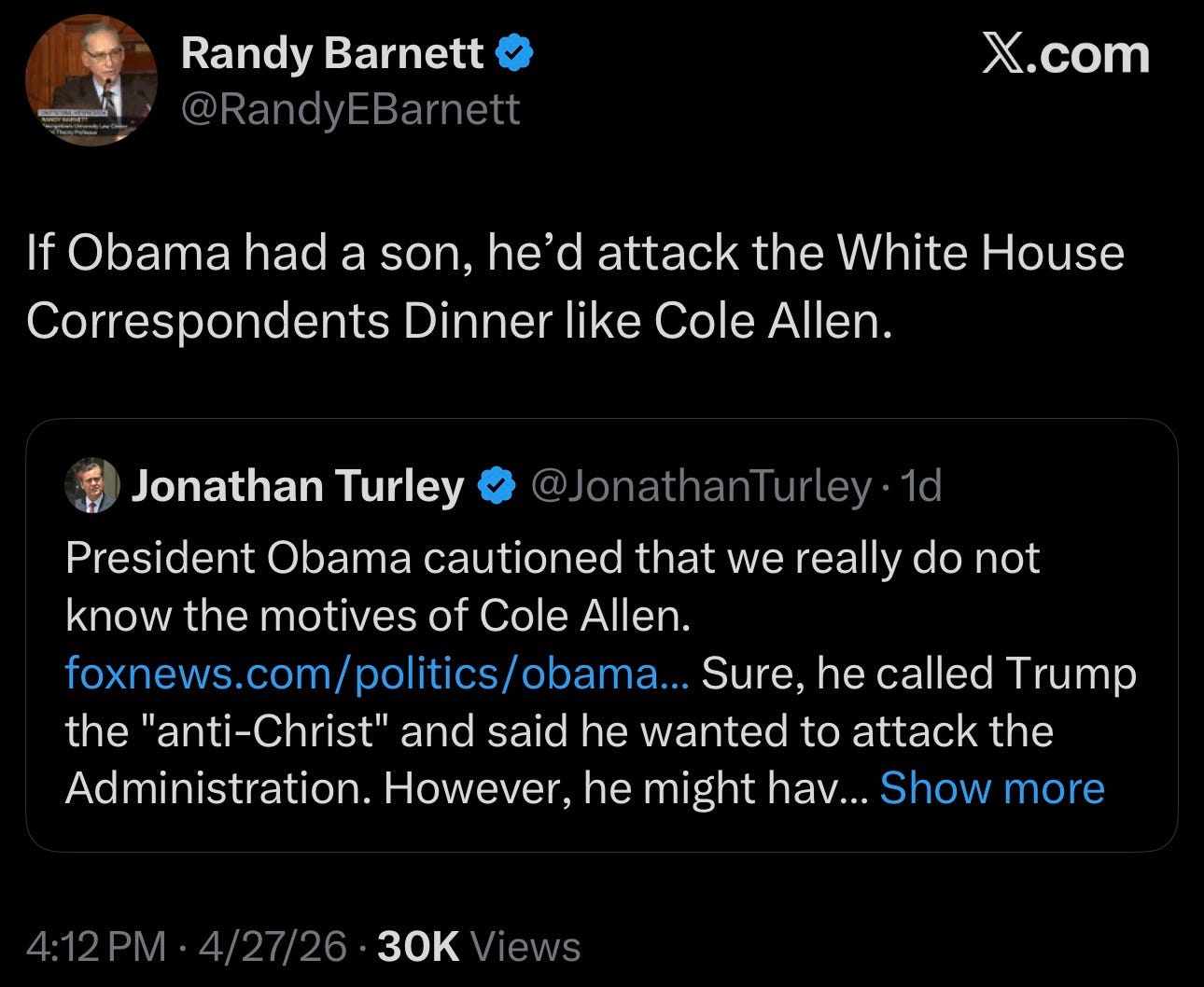 Note: Well, Sexy Patriots, we thought about it. We heard the bullshit calls for civility and lowering the temperature. But then we realized they were coming from the same pieces of shit who attacked our Capitol, laughed at Paul Pelosi’s assault and basically formed a lynch mob to go after the Obamas for the last 15 years, so we decided fuck that. It was this specific dung worm who helped our decision…